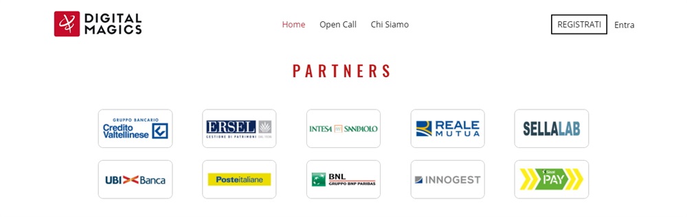 I 10 partner del programma, che parteciperanno in maniera attiva alle fasi di selezione, mentorship e sviluppo dei progetti scelti, sono: BNL Gruppo BNP Paribas, Credito Valtellinese, Ersel Investimenti, Innovation Center di Intesa Sanpaolo, Innogest, Poste Italiane, SellaLab, SisalPay, Società Reale Mutua di Assicurazioni e UBI Banca.