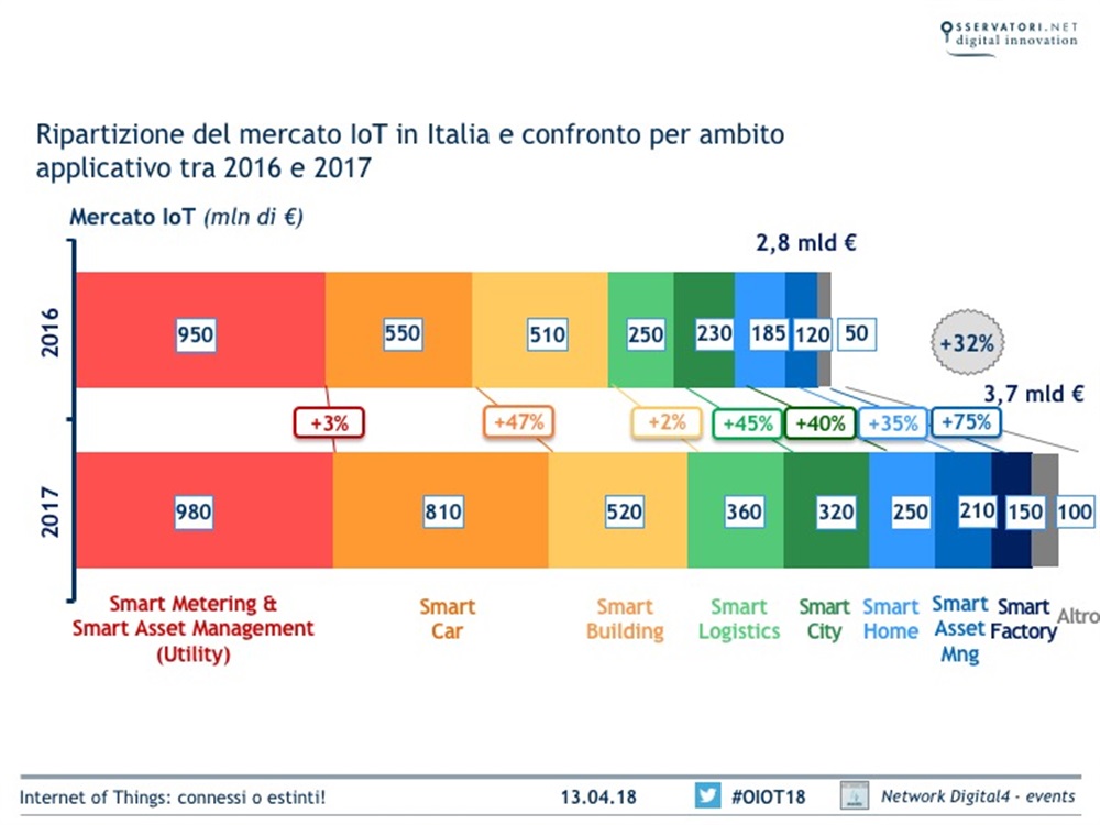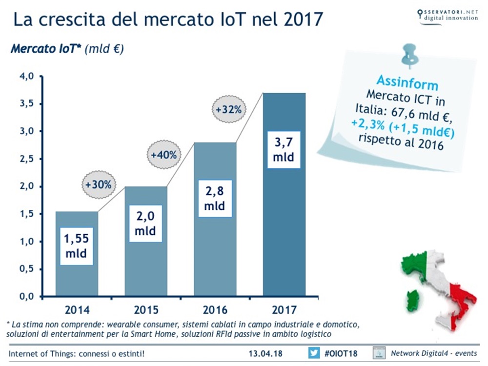 IL MERCATO INTERNET OF THINGS IN ITALIA VALE 3,7 MILIARDI DI EURO NEL 2017 (+32% RISPETTO AL 2016)