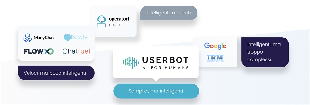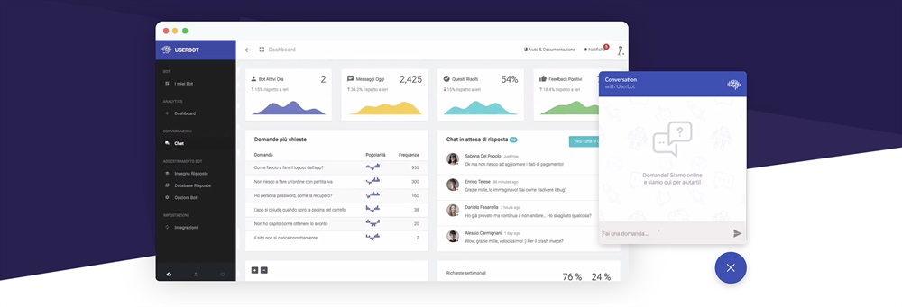 Userbot, spinoff di Mobixee Ltd e parte del gruppo Comunicatica, è la startup completamente italiana che ha sviluppato interamente una propria tecnologia in ambito AI; attraverso la sua piattaforma online as a service (SaaS) unisce i vantaggi di un’Intelligenza Artificiale (proprietaria e dedicata), con il classico supporto umano nella gestione dei clienti, automatizzando le risposte frequenti e imparando dalle risposte degli operatori umani. Progettato per garantire un Servizio Clienti rapido e sempre disponibile, Userbot è intuitivo da utilizzare e facilissimo da implementare, per realtà di ogni dimensione e senza dover essere necessariamente un tecnico.