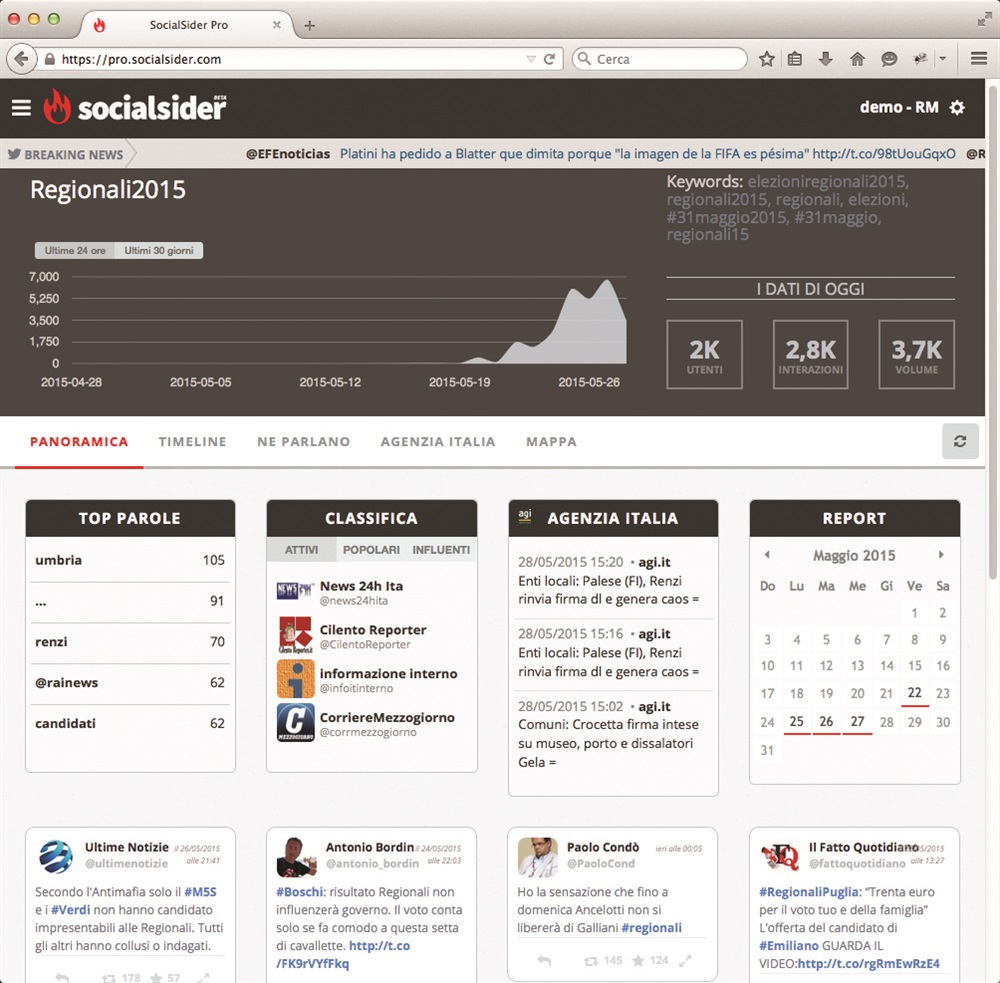 SocialSider classifica le news e i tweet geolocalizzati. Le province più attive sulle Regionali2015 sono Roma, Milano, Genova, Bari e Salerno.