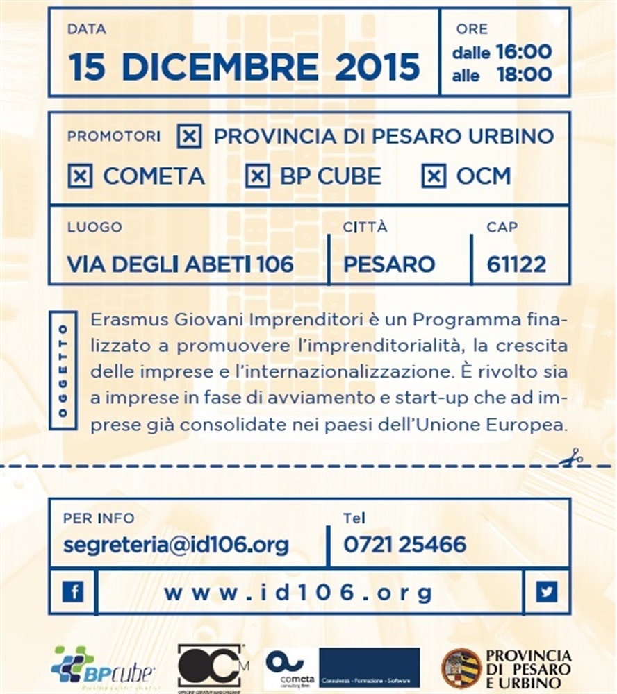 Il 15 Dicembre a Pesaro, negli spazi di ID106, si terrà un incontro che presenterà questa opportunità e ne illustrerà tutte le sue potenzialità.