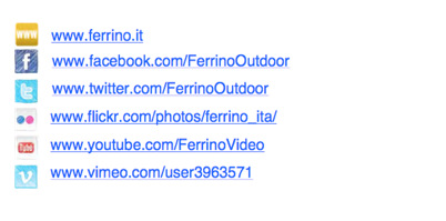 Tende da campeggio e comunità, sacchi a pelo, zaini, racchette da neve, borse ed abbigliamento oltre ad un’ampia scelta di accessori tessili e metallici sono tra le proposte principali della produzione Ferrino.