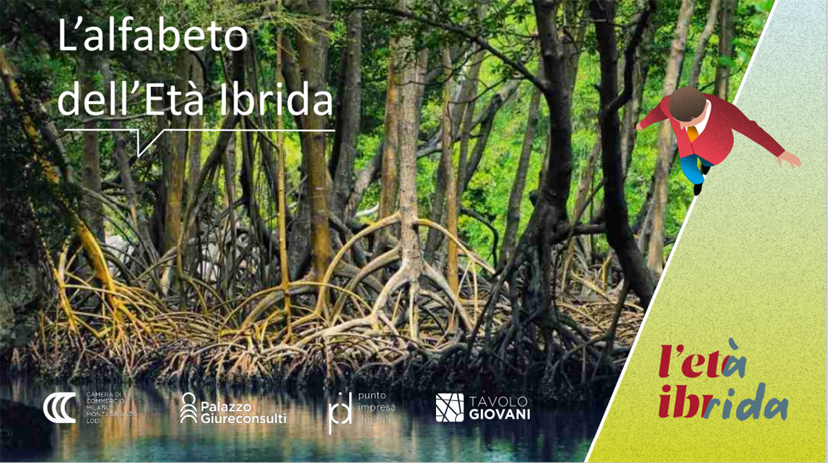 Le radici a trampolo delle mangrovie sono come funamboli in equilibrio tra l’acqua e la terra, senza appartenere a nessuno dei due elementi. Alla generazione Z succede qualcosa di simile: si muove in bilico tra atomi e bus, riuscendo a crescere rigogliosa su questo terreno in continuo mutamento, un ambiente sempre nuovo e dalle sfide sorprendenti, un nuovo ecosistema che ha dato inizio a una nuova civiltà: l’Età Ibrida.