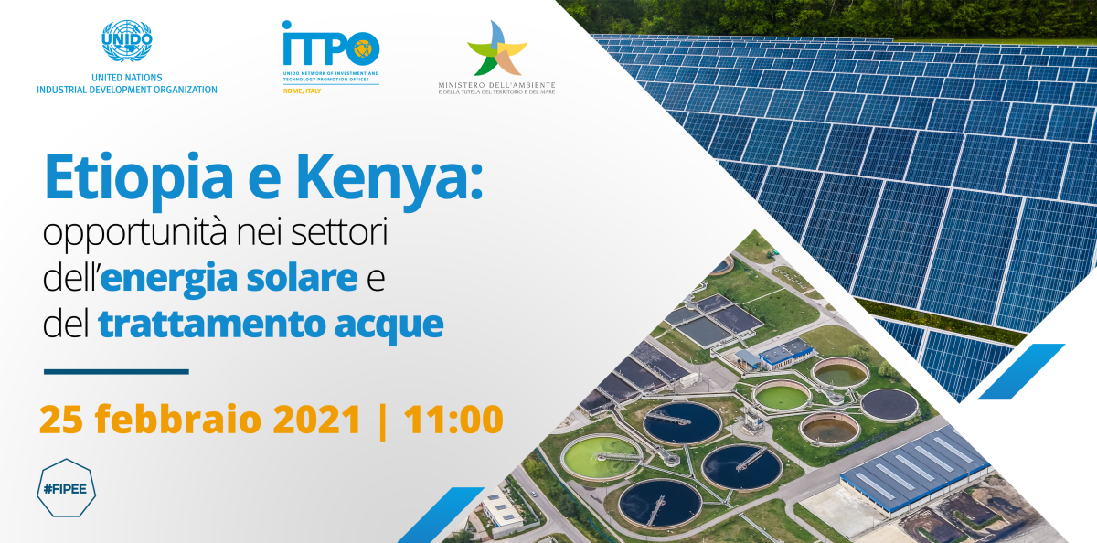 Si terrà online giovedì 25 febbraio alle ore 11:00 il forum “Etiopia e Kenya: opportunità nei settori dell’energia solare e del trattamento acque”; l’evento, organizzato da UNIDO ITPO Italy, vuole essere un’occasione di dialogo volto ad approfondire le opportunità di investimento e di business presenti in Etiopia e Kenya in ambito di energia solare e trattamento delle acque.