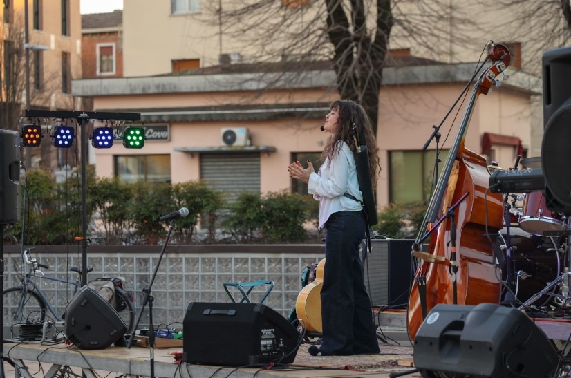 L’occasione è (stata) SOLIDALIA, un mercatino con i prodotti e i produttori delle colline di Fidenza e dell’economia solidale organizzato appunto da questo gruppo di persone che ha deciso di incontrarsi per riflettere sui propri consumi per acquistare prodotti di uso comune, utilizzando come criterio guida i concetti di giustizia, solidarietà e rispetto per l’ambiente. Valori che condividono in pieno con la musicista attivista.