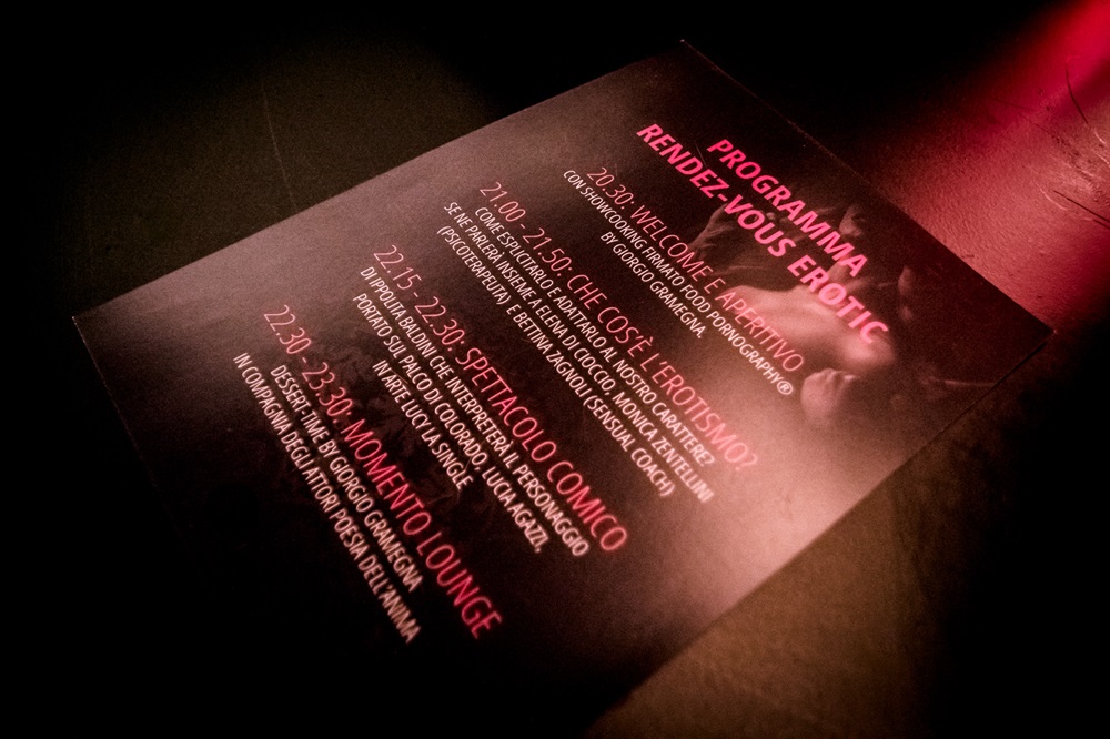 18.00: Welcome e aperitivo con show cooking firmato Food Pornography® by Giorgio Gramegna. A seguire una sorpresa dello chef