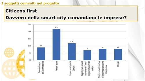 La parola è poi passata a Paolo Testa, Direttore di Cittalia, Centro studi Anci e ad Alfredo Moroni, Assessore del Comune dell’Aquila, che ha spiegato il progetto di ricostruzione della sua città in chiave 2.0:" Smart City per la città dell'Aquila è una necessità e una responsabilità sia nei confronti dei cittadini dioggi che dei cittadino del futuro. L'evento sismico del 6 aprile 2009, immane tragedia per il territorio, ha imposto la necessità di ricostruire un tessuto urbano già problematico prima del terremoto. Diventa quindi imprescindibile la scelta strategica di impostare tutte le fasi della ricostruzione secondomo delli smart cities in ambito tecnologico, culturale e di condivisione con la cittadinanza delle scelte decisive. Questa impostazione ha permessola nascita, e in alcuni casi la posa in opera, di una serie di progetti che, seppur attivi in ambiti separati, concorrono alla creazione di una visione organica del tessuto urbano; un tessuto urbano pensato a misura d'uomo ed esaltato dall'uso delle moderne tecnologie applicative in ambito energetico, di reti, di e-governement e di edilizia."