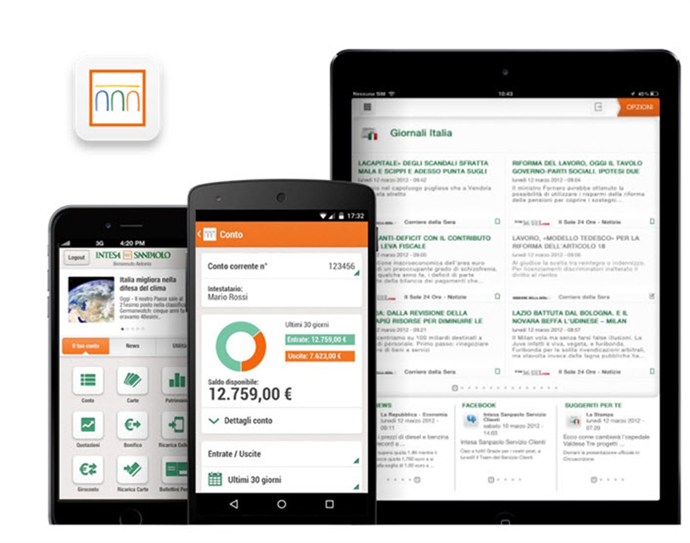 L’app, che ha debuttato sull’Appstore Apple il 2 Aprile, è stata scaricata da decine di migliaia di utenti, con uno straordinario risultato in termini di utilizzo: oltre il 90% degli utenti che hanno scaricato l’app la utilizzano settimanalmente per effettuare le proprie operazioni bancarie e per informarsi. Un risultato unico per una proposition di user experience bancaria mai vista prima nel Mondo. Infatti, gli utenti non solo possono utilizzare i classici servizi bancari come effettuare un bonifico e controllare il conto ma sono anche in grado di pagare i bollettini con la lettura del QR code. Inoltre, sfruttando la geolocalizzazione dell’iPad gli utenti possono identificare e visualizzare i bancomat, le filiali, e partner del programma Bonus Intesa Sanpaolo più vicini. Per di più hanno a disposizione anche un’edicola digitale “tailor made”. Nella sezione News l’utente può scorrere i principali titoli dei giornali italiani e leggere i temi del giorno e altre notizie di proprio interesse: dalla moda al lusso alla tecnologia. Inoltre, egli può accedere a due specifici canali informativi all’interno dei quali sono pubblicate le ricerche di mercato e di economia prodotte dall’Ufficio Studi di Intesa San Paolo.