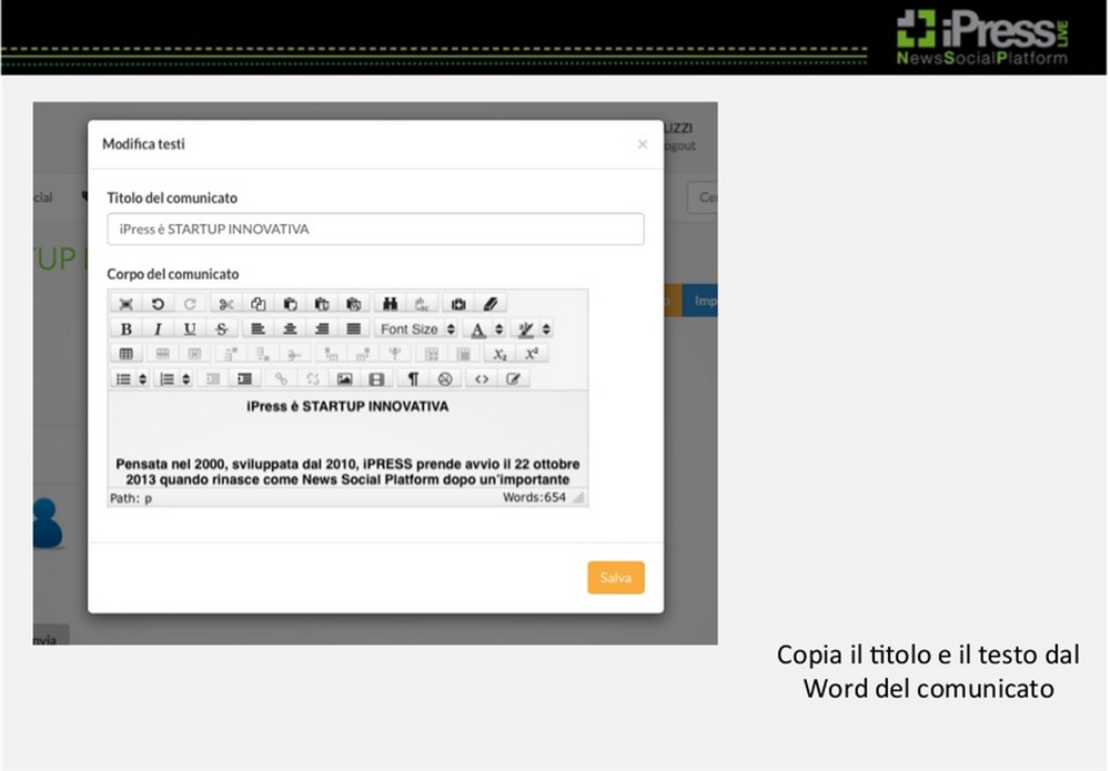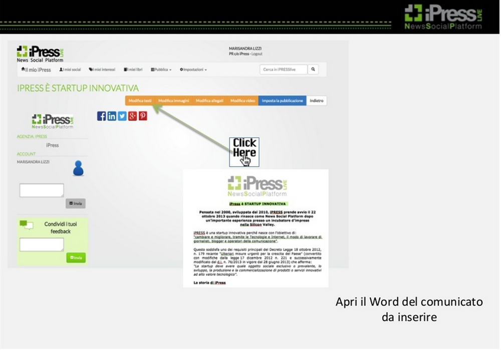 Per potere utilizzare gratuitamente iPressLIVE e pubblicare i propri comunicati: