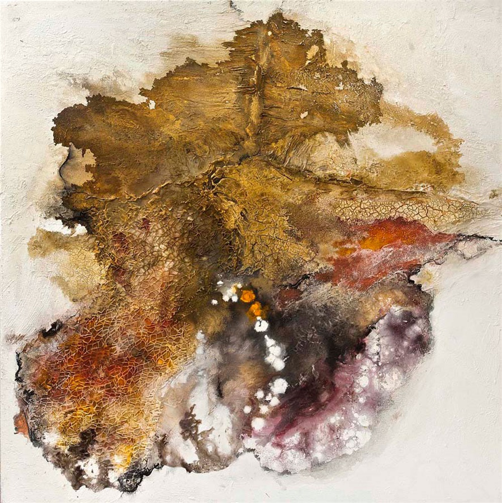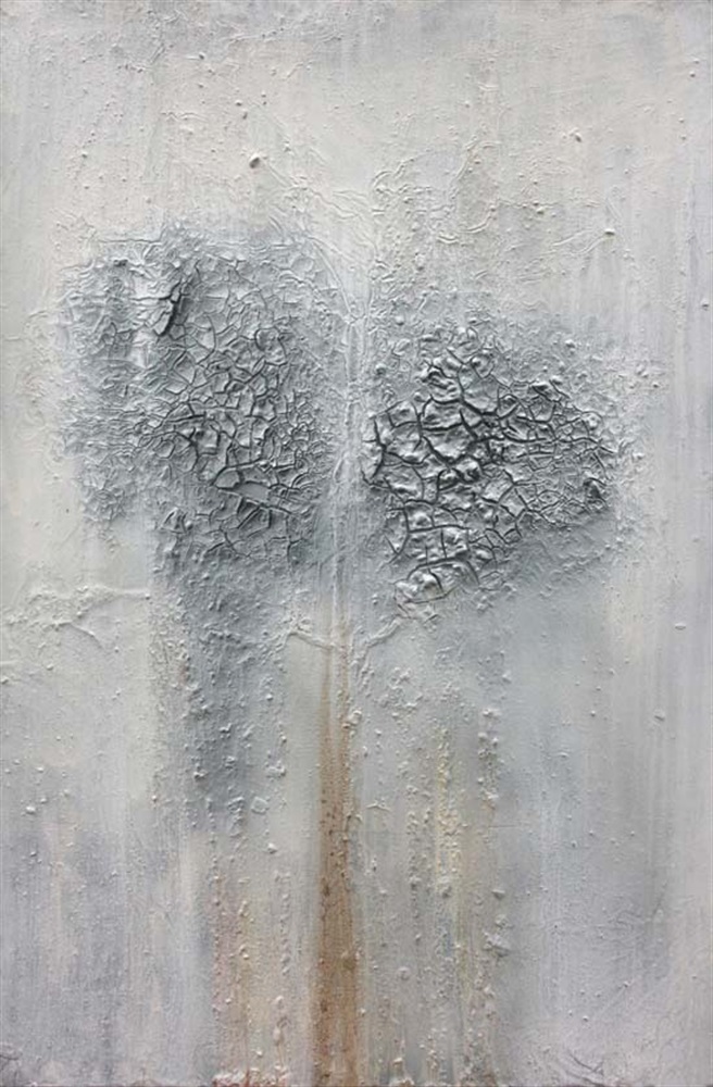 In 2004 she shifted from the impetuousness of colors to experimenting with matter, both in terms of materials and of kinds of use. Her technique, which she twisted, folded and consolidated, “emerges as a mirror of the universe of forces that dominate the human soul.” Her personal mode of expression, which is closely linked to Alberto Burri in terms of its ideal point of origin, is always evolving.