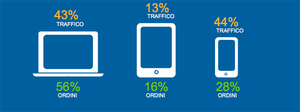 A livello globale, dalla riduzione di traffico e dalla quota di ordini, in calo rispettivamente del 19% e 10%, si nota come il tablet stia vivendo un momento di crisi. Gli smartphone, per contro, continuano a registrare un aumento del traffico del 30% e una crescita degli ordini del 50% anno su anno. Nel settore Home, in particolare, il pc resta il dispositivo preferito (43% di traffico; 56% degli ordini), seguito dallo smartphone (rispettivamente 44% e 28%) e, ultimo, il tablet (13% di traffico; 16% degli ordini). Rispetto agli altri settori l’Home resta comunque quello che registra ancora le percentuali più alte di traffico e ordini da tablet. Queste le percentuali di ordini da tablet per gli altri settori analizzati: health and beauty 11%, abbigliamento 13%, lusso 14%, abbigliamento sportivo 10%.
