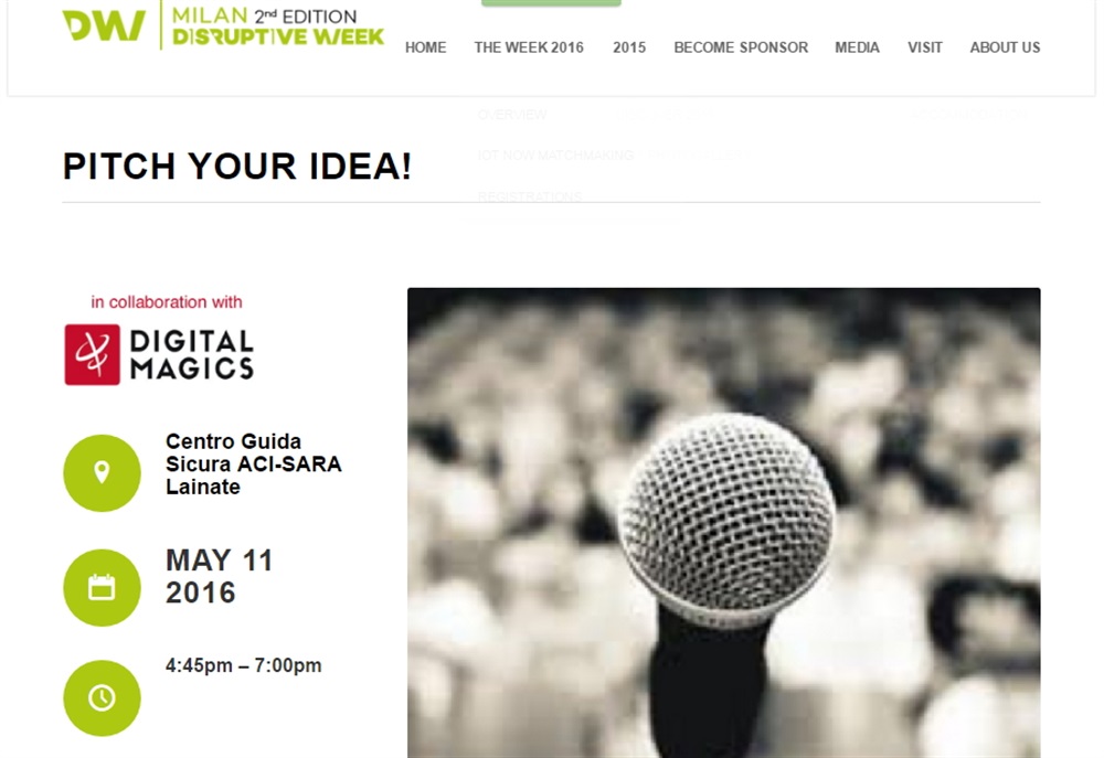 Milano, 2 maggio 2016 - Digital Magics, business incubator quotato sul mercato AIM Italia di Borsa Italiana (simbolo: DM), è partner della 2ª edizione della DISRUPTIVE WEEK MILAN dall’8 al 13 maggio. Una settimana di eventi nazionali e internazionali (conferenze, aree espositive, talk show, visite d’impresa, matchmaking) dedicata allo sviluppo delle tecnologie emergenti con particolare focus su Internet of Things (IoT), Smart Energy, Wearable, Smart Health, Smart Home e Industry 4.0.