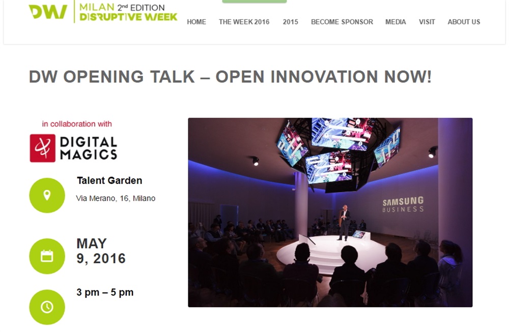 DW OPENING TALK “OPEN INNOVATION NOW!” - Lunedì 9 maggio, 15:30 Talent Garden (Via Merano)