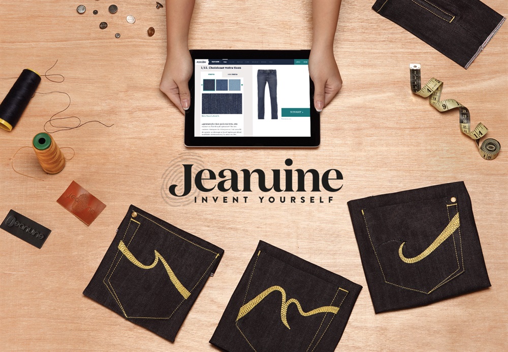Jeanuine offre una personalizzazione interattiva con una visualizzazione in real time del jeans in creazione. Grazie al suo sistema di configurazione, Jeanuine rende i clienti i designer dei propri jeans. In questo modo i clienti potranno indossare jeans che possano rispondere ai propri bisogni in termini di misure e ai propri gusti in termini di linea, cuciture, tasche e molti altri dettagli, tutto contornato dal french touch dei due fondatori.