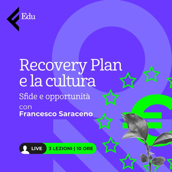 Il corso Recovery plan e la cultura: sfide e opportunità, tenuto da Francesco Saraceno e Alessio Vaccaro per Feltrinelli Education, piattaforma ibrida di cultura e formazione, approfondisce il tema del Piano Nazionale di Ripresa Resilienza (PNRR). Un percorso a tappe per comprendere la portata complessiva del piano, le sue ricadute pratiche sull’economia e le opportunità per operatori economici e sociali, ponendo attenzione alla trasformazione delle politiche europee e il Recovery Fund che del progetto Next Generation EU rappresenta una parte fondamentale con un'analisi della sua genesi, le sue caratteristiche, il suo funzionamento e l’impatto potenziale sull’Italia e la nostra economia.