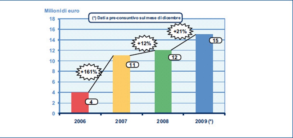 Secondo l’indagine svolta dalla School of Management del Politecnico di Milano nel 2009 si assiste a una crescita degli investimenti pubblicitari sul Media Cellulare da parte delle aziende del 21% rispetto al 2008. Il mercato, ancora embrionale, vale oggi 32milioni di euro, ma le potenzialita' sono notevoli considerata la sempre maggiore diffusione di terminali di ultima generazione.