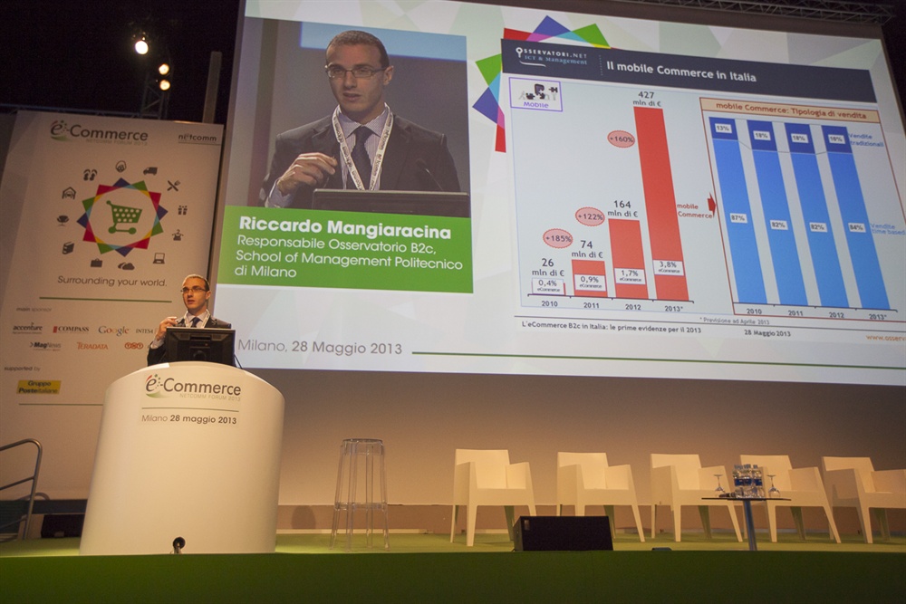 Secondo le nostre prime stime, la crescita del commercio elettronico italiano per il 2013 sarà intorno al 17%, un valore di poco inferiore a quello dello scorso anno, per un fatturato previsto di circa 11,2 Miliardi di euro – ha dichiarato Riccardo Mangiaracina, Responsabile della Ricerca dell'Osservatorio B2c Netcomm-Politecnico di Milano – "La crescita è trainata dalle vendite di prodotti, che, grazie all'andamento molto positivo soprattutto di Abbigliamento e Informatica ed elettronica di consumo peseranno nel 2013 quasi il 40% del totale vendite. Nel 2013 aumenterà ulteriormente la qualità e quantità dell'offerta online, grazie sia ai nuovi ingressi (soprattutto nei comparti dell'Abbigliamento e dell'Arredamento) che all’estensione della gamma da parte di alcuni player dell’eCommerce".