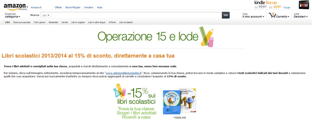 Quest'anno infatti, acquistare i libri scolastici sarà facile come un click: basterà seguire le istruzioni al link www.amazon.it/15elode, consultare la pagina relativa alla propria classe nella banca dati dei libri adottati, selezionare i testi da acquistare, metterli nel proprio carrello e procedere all'acquisto.