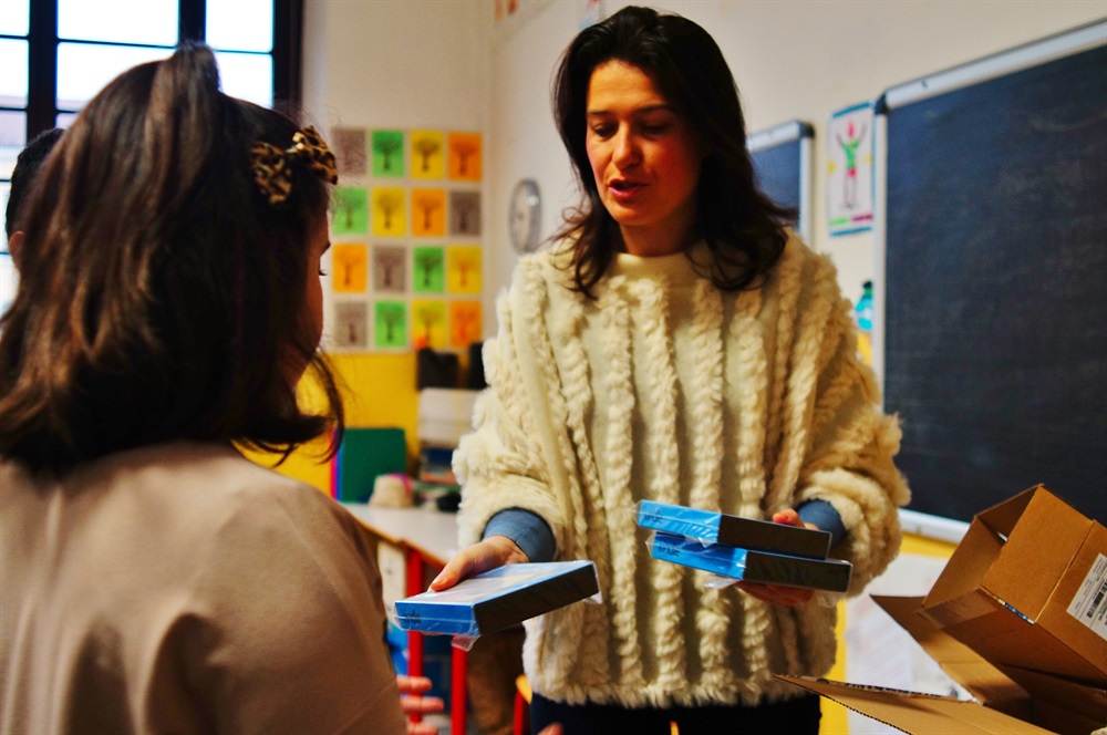I prodotti sono stati consegnati da Giulia Poli, responsabile Kindle Content e membro del comitato di Amazon nella Comunità di Amazon Italia, nel corso della visita presso le classi dell’Istituto Comprensivo Tommaso Grossi.