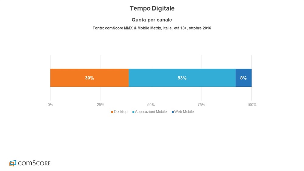 Le applicazioni mobile hanno dominato il nostro tempo praticamente dalla loro comparsa, e hanno raggiunto un’altra importante pietra miliare a ottobre 2016, in cui rappresentano più del 53% di tutti i minuti digitali in Italia.