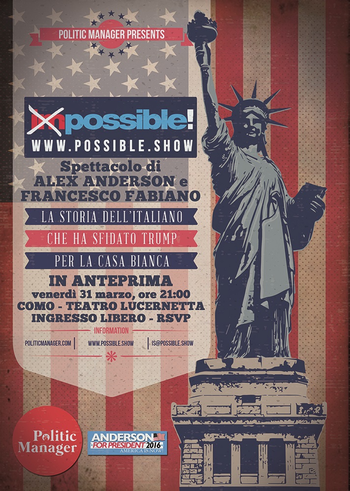 Un infotainment i cui protagonisti saranno Alex Anderson e il mental coach Francesco Fabiano, la cui narrazione si snoderà attraverso le storie di 4 personaggi che, ognuno a suo modo, hanno reso possibile l'impossibile. Un mix di immagini e parole attraverso il quale saranno toccati argomenti come il Personal Branding, lo Storytelling, la Comunicazione politica, le Fake News e il confine (sottilissimo) tra diritto alla privacy e sicurezza.