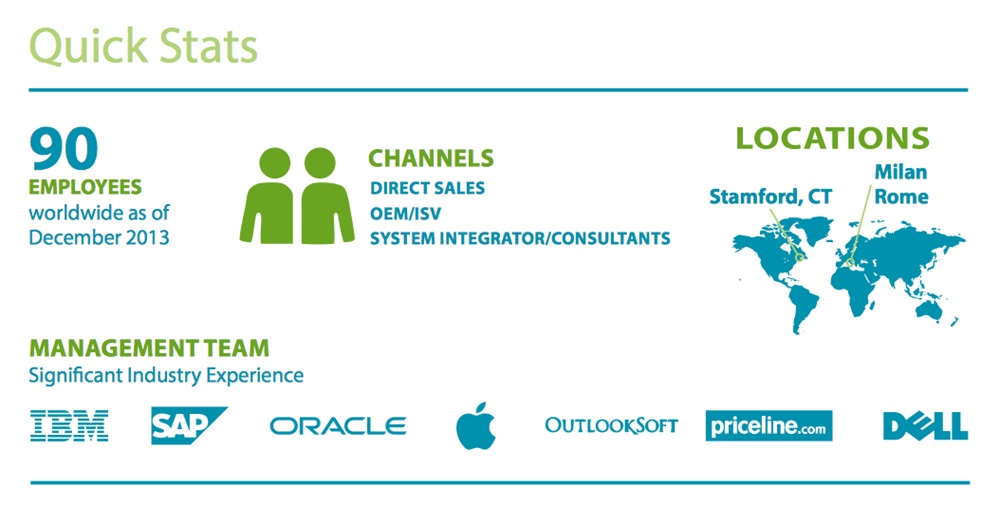 Agli 80 dipendenti e consulenti presso l’HQ di Latina, si sono aggiunte, nel corso del 2013,  20 risorse presso la sede di Stamford suddivisi tra marketing, direct sales, pre-sales e partners sales; la struttura si rafforzerà ulteriormente nel 2014: entro fine anno è prevista una crescita del personale pari al 50%.