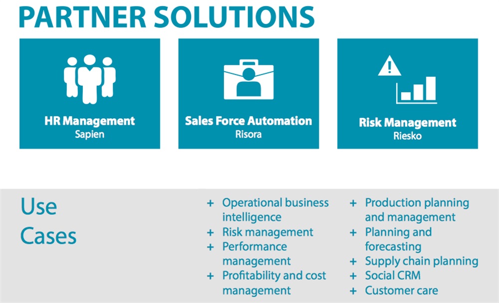 • connettere risorse IT già esistenti in modo bi-direzionale, così le aziende possono creare soluzioni che sono state precedentemente al di fuori delle tipiche ricerche e funzionalità di ERP, Business Intelligence, data warehouse e dei sistemi di pianificazione.