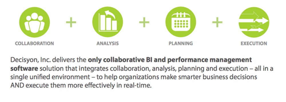 Decisyon, Inc. offre ad aziende, produttori e brand di tutto il mondo soluzioni esclusive di software aziendale collaborativo che integrano analisi, pianificazione ed esecuzione in un unico ambiente per accelerare i processi decisionali.