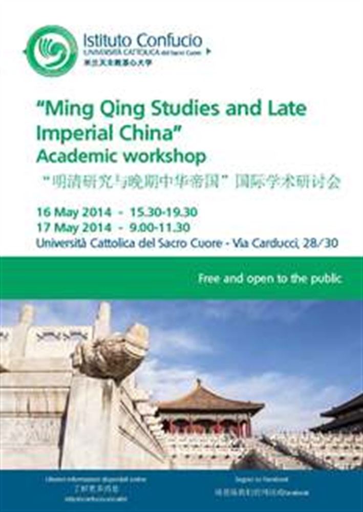 Nelle giornate di venerdì 16 e sabato 17 maggio si terrà infatti presso Università Cattolica un workshop aperto a tutti e gratuito intitolato “Ming Qing Studies and Late Imperial China”, durante il quale interverranno 8 accademici di spicco provenienti da tutta Italia. Il punto di partenza di questo workshop è la recente pubblicazione di due volumi sulle dinastie Ming e Qing, considerati un ponte tra la Cina antica e quella contemporanea. Il workshop si aprirà alle 16.30 di venerdì (fino alle 19.30) e si concluderà alle 11.30 di sabato con una tavola rotonda sul volume di Paolo Santangelo “L’Impero del Mandato Celeste. La Cina nei secoli XIV – XIX”.