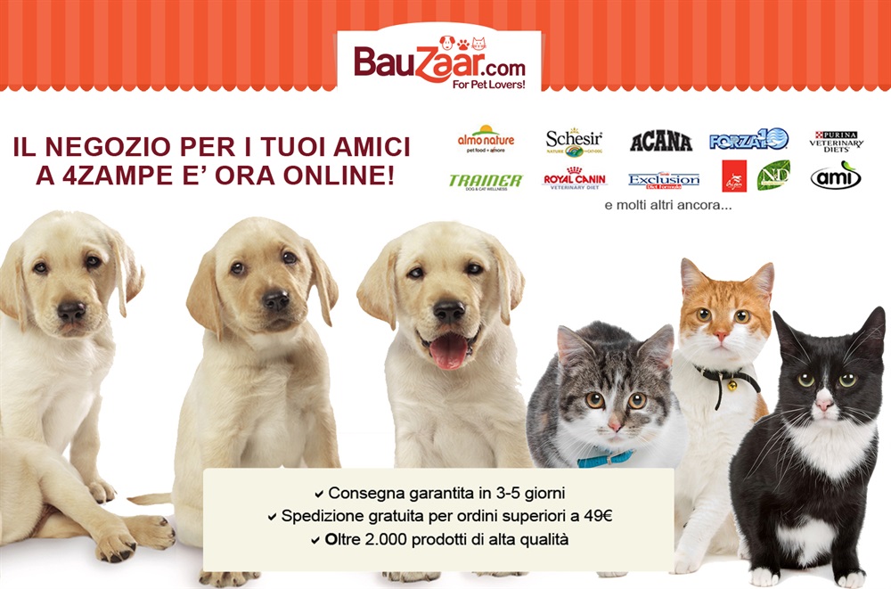 Bauzaar.com è un portale e-commerce, specializzato nella vendita online di cibo e snack di alta qualità per cani e gatti. L’ampia offerta comprende oltre 2.000 prodotti delle più importanti marche internazionali, tra cui Acana, Almo Nature, Amì, Dinner for Dogs, Eukanuba, Exclusion, Forza 10, Green Fish, Hill's, Natural & Delicious, Orijen, ProLife, Purina Pro Plan, Royal Canin, Schesir, Trainer, Vet Life. Bauzaar ha sede legale a Milano e unità operativa a Molfetta, dove sono presenti gli uffici della società e il magazzino.