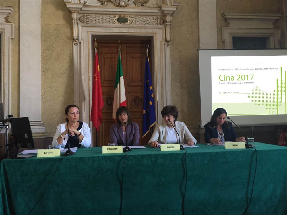 Trieste, 17 Luglio 2017. Si è svolta a Trieste, presso la sede della Regione Friuli Venezia Giulia, la presentazione sul Rapporto Annuale “Cina 2017. Scenari e prospettive per le imprese”, rapporto che raccoglie ricerche, analisi di rischio e previsioni nel breve-medio periodo sul paese asiatico.