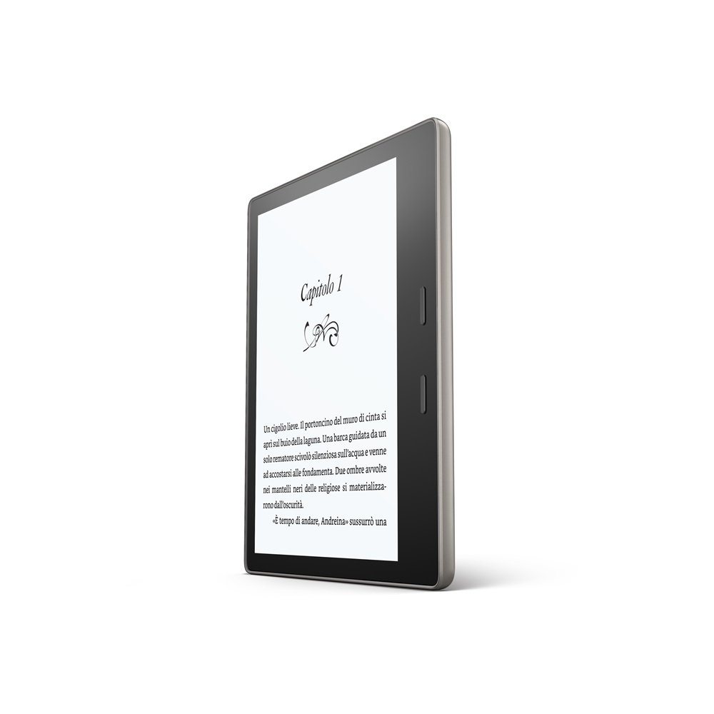 Il nuovo Kindle Oasis è disponibile in due versioni, con due diverse opzioni di archiviazione: 8 GB, il doppio rispetto al primo Kindle Oasis, in grado di contenere migliaia di titoli, e 32 GB, che consente di archiviare contenuti ancora più ricchi in file di grandi dimensioni.