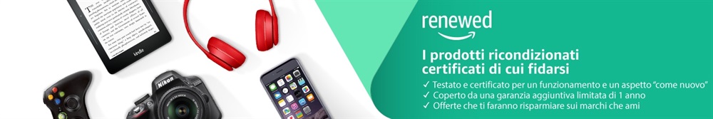 Amazon è lieta di annunciare Amazon Renewed, una destinazione sicura per tutti i clienti che desiderano scoprire e acquistare prodotti di elettronica di consumo e non solo, ricondizionati con qualità certificata, pagando fino al 40% in meno rispetto al prezzo praticato su Amazon.it del prodotto nuovo.
