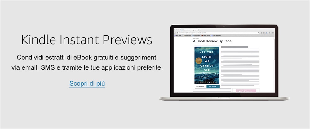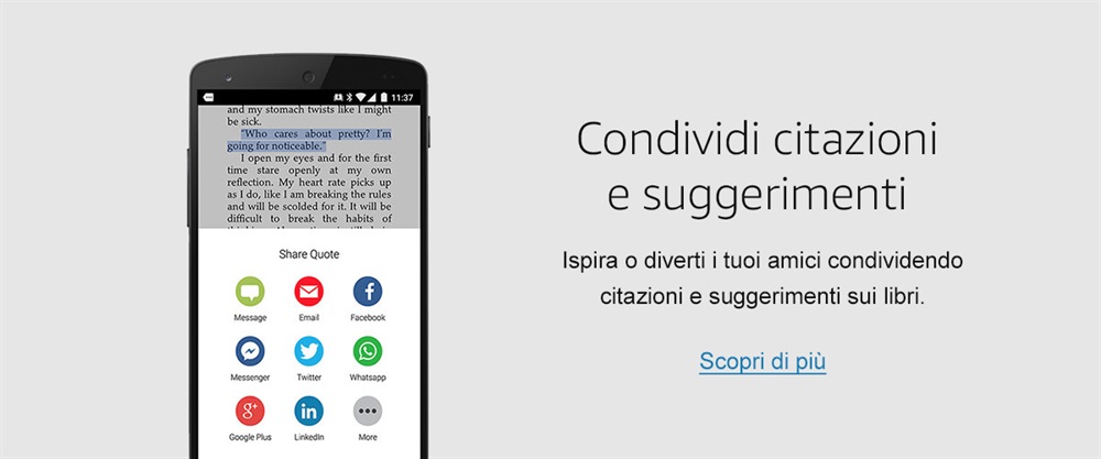 Per ulteriori informazioni su come Kindle consente di leggere in ogni momento e in qualsiasi luogo, è possibile visitare la pagina amazon.it/kindleapps