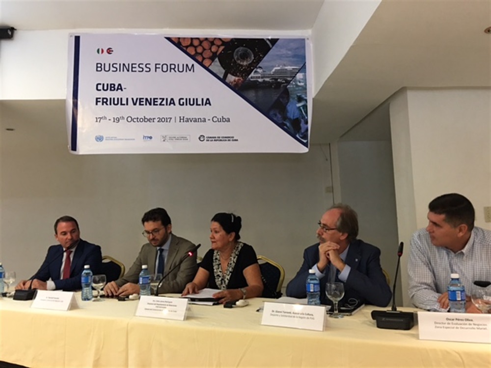 Having that in mind, UNIDO ITPO Italy concretely supported the Italian delegation, through the organization of the FVG-Cuba Business Forum and several bilateral meetings.  In particular, the Delegation firstly met the Italian Ambassador at La Habana to illustrate the scope of the mission and to have advice about the current investment and business situation in Cuba.  Moreover, during FVG Region-Cuban Business Forum, organized in cooperation with the Cuban Chamber of Commerce and MINCEX (Ministerio de Comercio Exterior y la Inversión Extranjera), the Italian representatives outlined the potential of FVG Region as a reliable partner to establish mutually beneficial cooperationin the aforementioned sectors. Furthermore, our Office arranged high-level meetings between FVG Delegation led by the Regional Minister for Culture, Sport and Solidarity, Mr. Gianni Torrenti,  and Cuban counterparts such as the Cuban Ministry of Culture, the Ministry of Sport, INDE (Cuban Institute for sport, physical education and recreation, the international director of the National Assembly of the People's Power , the Oficina del Historiador and MINCEX.