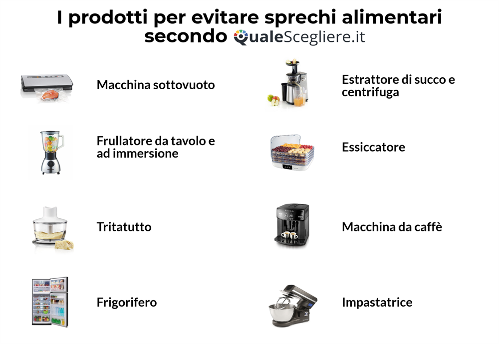 La filosofia del “no-spreco”, infatti, non riguarda solo l’acquisto di ciò di cui si ha davvero bisogno evitando il surplus alimentare, ma investe anche tutta la fase di preparazione vera e propria delle pietanze che, con i giusti strumenti da cucina e con pochi accorgimenti, può essere orientata alla riduzione degli scarti, al riutilizzo creativo degli ingredienti e ad una preparazione più coscienziosa delle quantità di cui si ha bisogno. Per aiutare tutti gli utenti a compiere scelte più sostenibili nella vita di tutti i giorni, QualeScegliere.it ha indivudato i piccoli e grandi elettrodomestici da cucina più “virtuosi” proprio perché in grado di aiutarci a sprecare meno cibo.