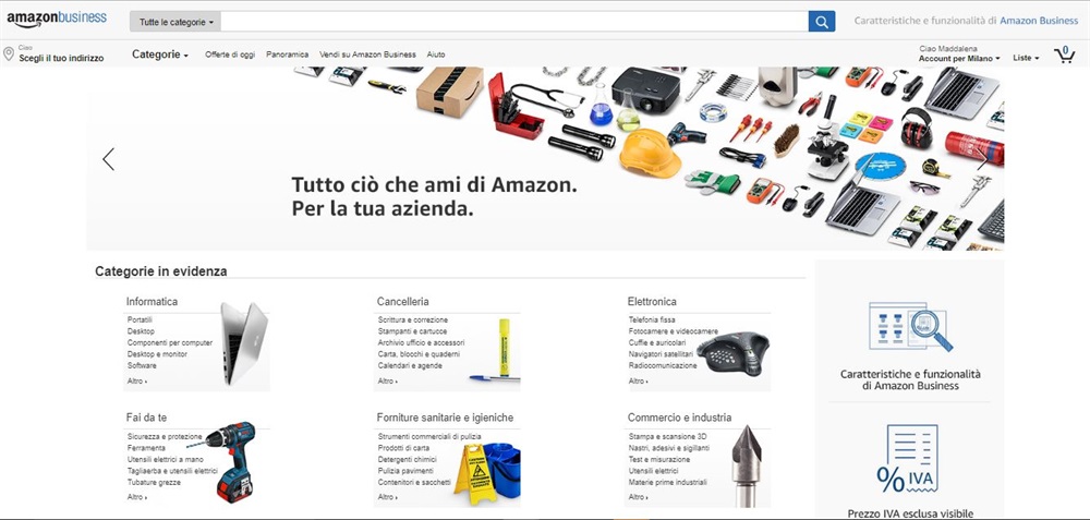 • Esperienza unica per le aziende: Ricerca, navigazione e esperienza di acquisto su misura per gli acquisti aziendali; è possibile ottenere sconti sulla quantità oltre ad un’ampia selezione e prezzi competitivi.