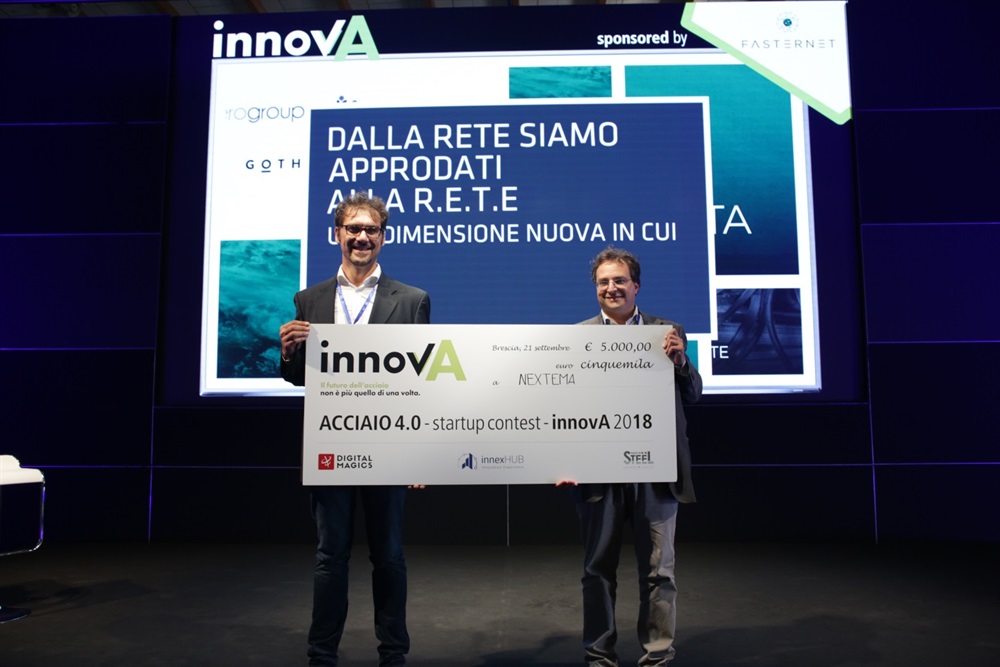 Brescia, 21 settembre 2018 - Nextema vince “ACCIAIO 4.0 – Startup Contest”, la prima Call for Innovation dedicata alla siderurgia, lanciata da siderweb - La community dell’acciaio, l’unico quotidiano online nazionale specializzato sull’informazione economico-siderurgica, che organizza Made in Steel (la principale Conference & Exhibition del Sud Europa dell’intera filiera dell’acciaio) e Digital Magics, il più importante incubatore di startup digitali “Made in Italy” attivo su tutto il territorio Italiano.