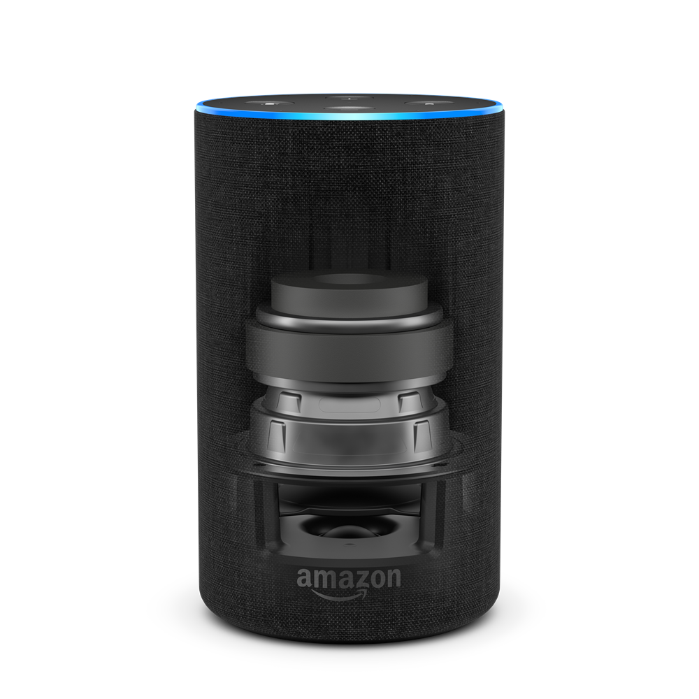 Echo Plus presenta anche un woofer al neodimio da 76,2 mm e un volume rende potenti i toni bassi e chiari i medi e gli alti. È disponibile nei colori grigio chiaro, melange e antracite.