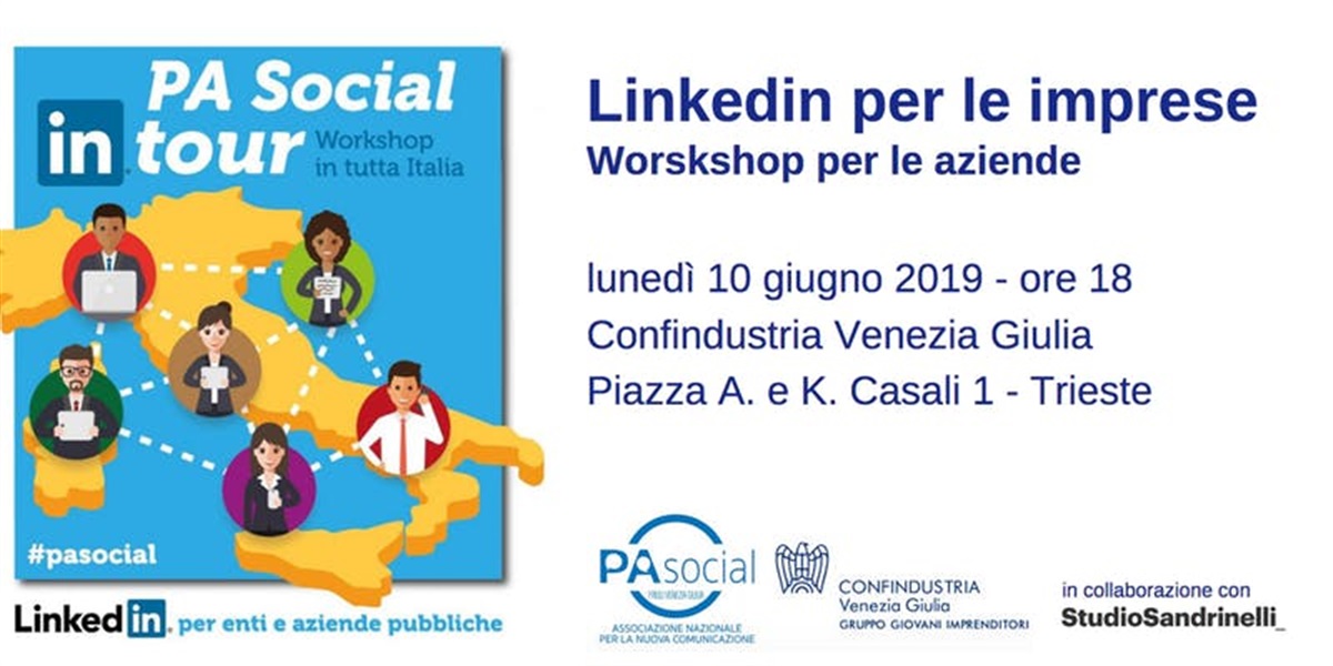 L’iniziativa, organizzata da PA Social Friuli Venezia Giulia e dal Gruppo Giovani Imprenditori di Confindustria Venezia Giulia in collaborazione con lo Studio Sandrinelli, si inserisce nell’ambito della tappa triestina del “PA Social in tour“, una serie di momenti di formazione e divulgazione che si sono già tenuti a Milano, Perugia, Bologna dedicati a enti, pubblica amministrazione e aziende, nati dalla collaborazione tra PA Social, l’associazione nazionale per una nuova comunicazione, e LinkedIn Italia.