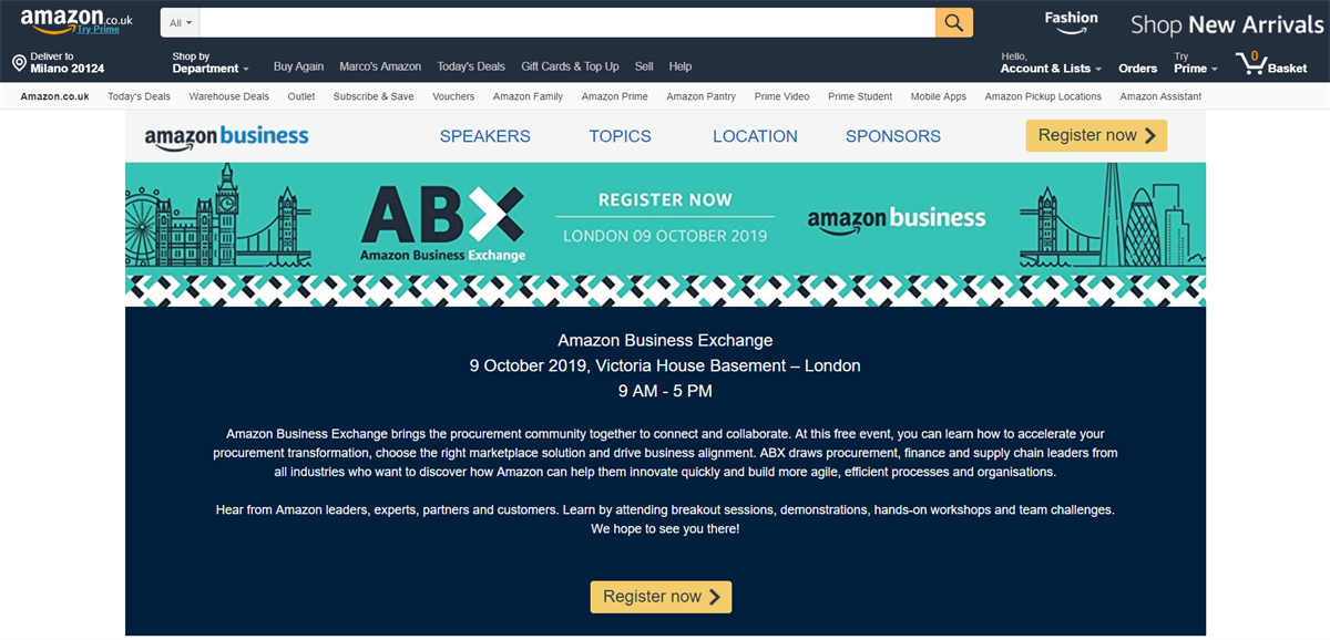 Siamo felici di riunire la community dei responsabili degli acquisti, un’occasione per sviluppare contatti e collaborazioni”, afferma Todd Heimes, Director di Amazon Business Europa e organizzatore di Amazon Business Exchange. “A questo evento gratuito, i partecipanti da tutta Europa potranno apprendere come accelerare la trasformazione dei propri metodi di approvvigionamento, come innovare in modo rapido e come costruire processi e organizzazioni più agili ed efficienti”.