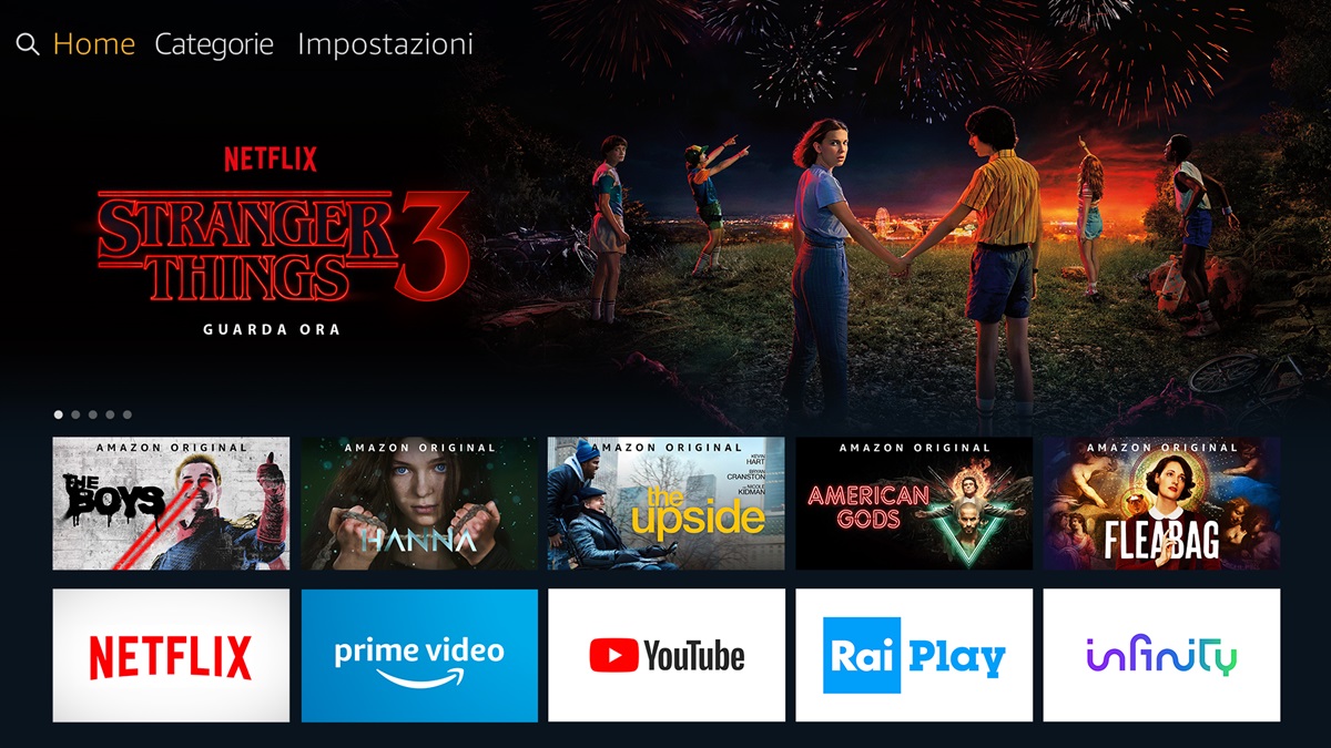 Fire TV porta sullo schermo più grande di casa le app e i contenuti più apprezzati (tra cui notiziari in diretta, eventi sportivi e contenuti on-demand per l’intrattenimento). È possibile scoprire migliaia di canali, app e Skill Alexa. Sono disponibili app popolari come Prime Video, Netflix, YouTube, Eurosport Player, Raiplay, TIMVISION e Infinity, nonché centinaia di app per la cucina, il fitness, i giochi e altro ancora. Si può ascoltare la propria musica preferita su Amazon Music, Spotify e TuneIn. In alcuni casi potrebbe essere necessario un abbonamento separato.