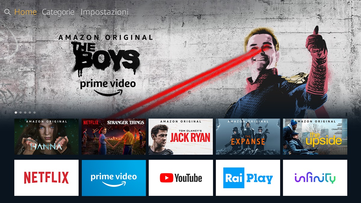 In Italia Fire TV offre una nuova interfaccia grafica dinamica, che rende ancora più facile e divertente trovare ciò che si desidera guardare. La nuova schermata iniziale fornisce consigli sui contenuti e suggerimenti sulle nuove app da provare. Trovare rapidamente le proprie app e i giochi preferiti è facile grazie a un elenco personalizzabile di app sulla schermata principale.