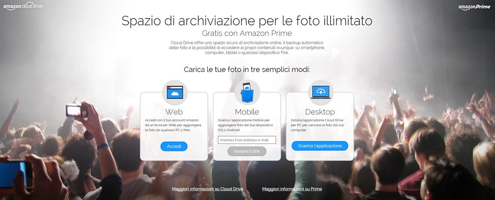 Gli iscritti a Prime possono caricare un numero illimitato di foto su Amazon Cloud Drive ed essere certi che siano al sicuro e a portata di mano
