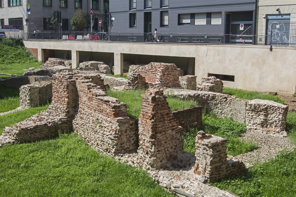 Il tour parte dal polo universitario, dai suoi chiostri e dalla sede centrale accanto alla Basilica di Sant'Ambrogio, edificato tra il 379 e il 386 e parte del viaggio ideato dall'Istituto che prosegue per il Tempio della Vittoria o Sacrario dei Caduti Milanesi di Piazza Sant'Ambrogio, la Chiesa di San Maurizio al Monastero Maggiore, costruita sui resti romani, all'angolo tra via Luini e Corso Magenta che in pochi sanno essere conosciuta come la Cappella Sistina della Lombardia. Il percorso romano continua con le Mura di Massimiano, la cui fase di costruzione iniziò già in epoca cesariana attorno al 49 a.C. per poi essere completate nel 291 con l'Augusto Massimiano, la Basilica di San Vittore al Corpo di via San Vittore accanto al Museo della Scienza e della Tecnica con il suo Mausoleo Imperiale dove nel venne data sepoltura all'imperatore Valentiniano II nel 392.