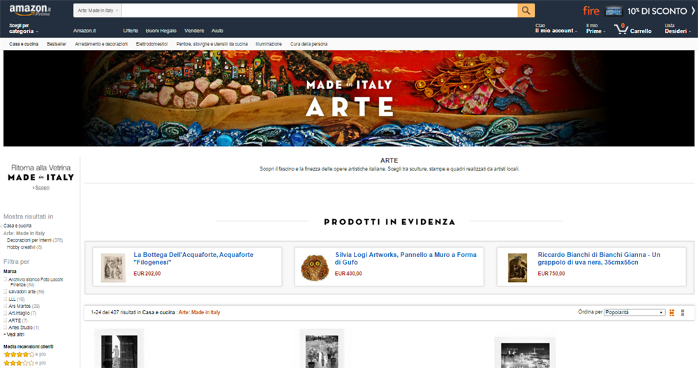 Il negozio Made in Italy di Amazon.it si allarga all'arte