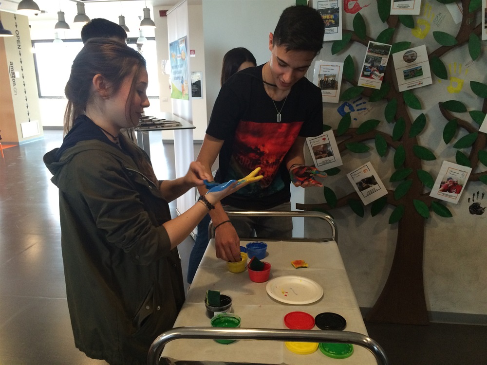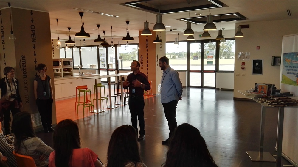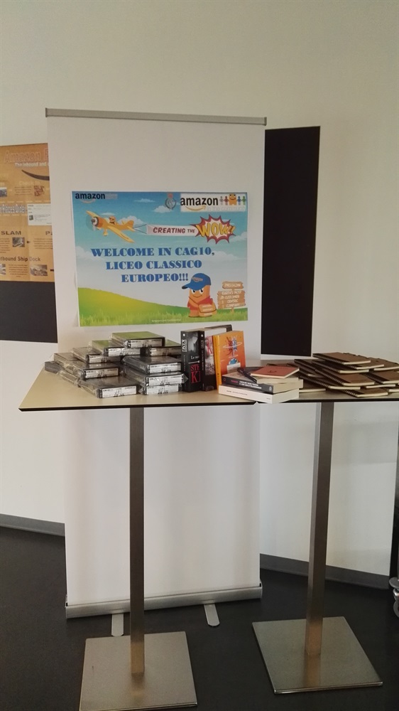 I prodotti sono stati consegnati dal comitato di Amazon in the Community del Customer Service di Cagliari nel corso della visita degli studenti presso il centro Amazon.