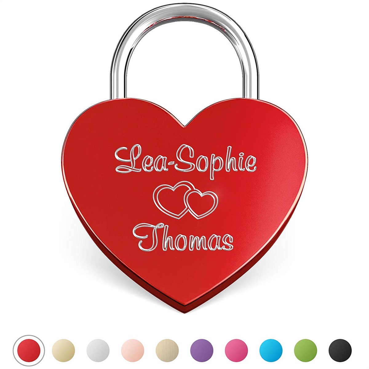8. Lucchetto d'amore con incisione personale a forma di cuore, Liebesschloss Factory, disponibile su Amazon.it, 16,99 euro