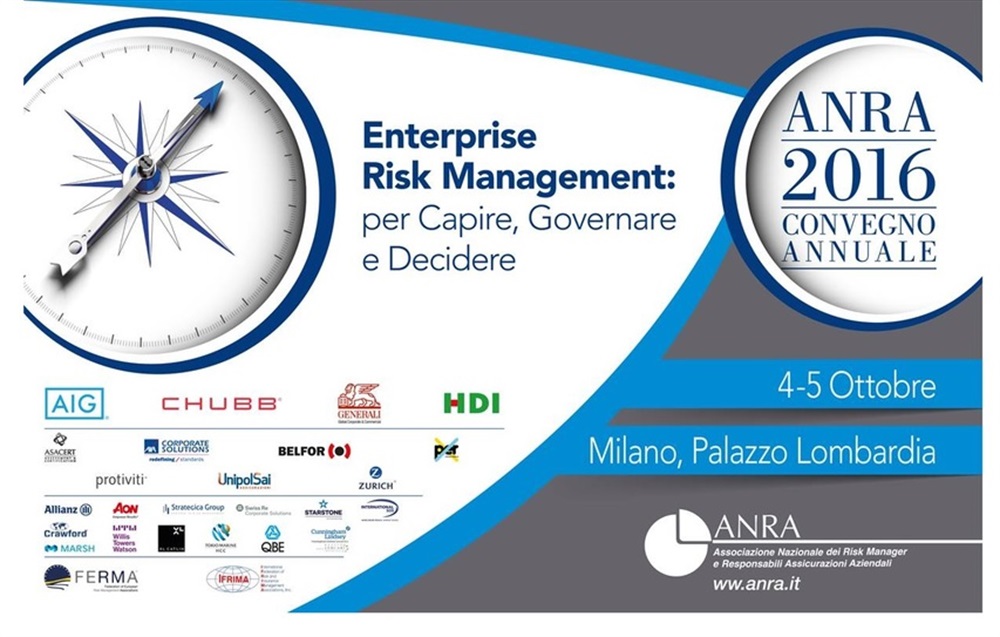 Nella seconda giornata Fulvio Conti a colloquio con Andrea Cabrini per ragionare degli scenari globali in continua mutazione, con un particolare focus su rischi e opportunità emergenti. Viene poi approfondita un’indagine condotta da Protiviti/ANRA sull’evoluzione della figura del Insurance Risk Manager, che in alcune imprese diventa Chief Risk Officer. A chiudere i lavori un dibattito sulla la Governance dei rischi con Giulio Canale, di SAES Getters e Claudio De Conto di Artsana e il saluto di Alessandro De Felice, Presidente di ANRA.