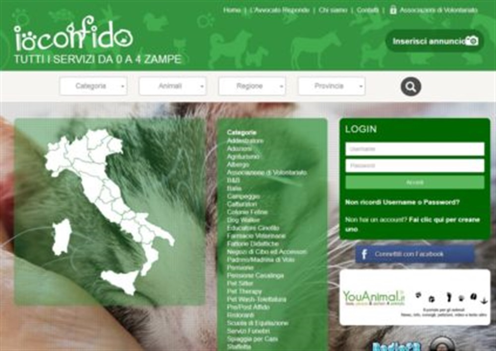 L’idea c’è tutta ed è  on line: www.ioconfido.com per il sito GRATUITO ed aperto a tutti dove trovare  i servizi per ogni tipo di animale domestico (non a caso, ‘da 0 a 4 zampe’, secondo lo slogan dell’unico portale nel quale trovare TUTTI i servizi dedicati ai nostri amici animali da zero a quattro zampe.
